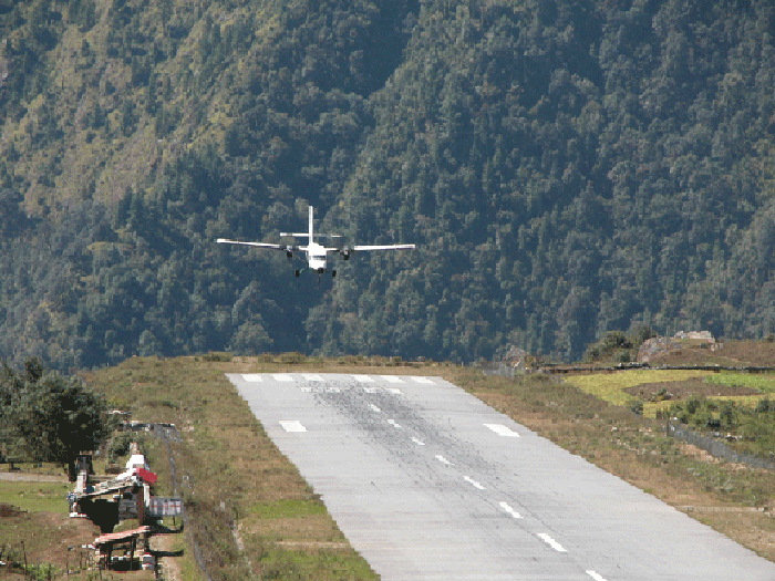 Day 03:  Flight to Lukla (2840m) and trek to Phakding (2610m). About 40 minutes’ flight and 3 to 4 hours’ walk; 230m altitude loss; Overnight at lodge