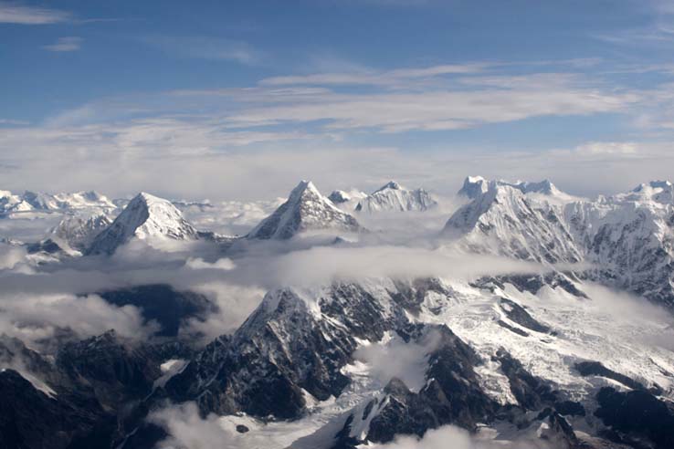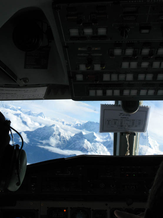 The captain will invite you into the cockpit and point out the major peaks in view, and you will be able to take clear photographs from there, and also through your own windows. If you are nearest to the peaks in the first part of your flight, you will be furthest away from them in the second part, and vice versa, so don’t panic about taking photographs until you are in a good position to do so. If you are confused about which peaks you are seeing, ask the host or hostess who will clarify matters for you.