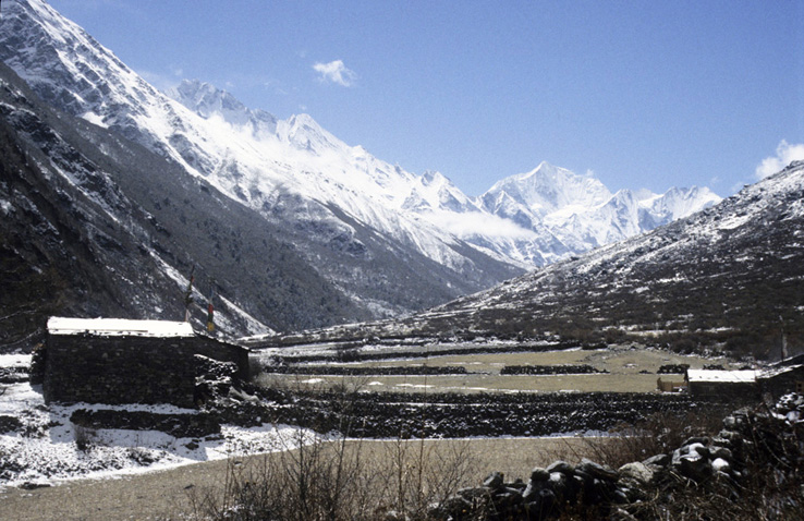 The next day starts with a gentle climb, soon becoming steeper and passing high above the Langtang Khola. Tantalising glimpses of Langtang Lirung (7246m) appear through the trees as you trek on to Ghora Tabela at 3000m and thence on to Langtang (3,500m The houses of Langtang have Tibetan-style flat roofs and are surrounded by stone walls enclosing fields of buckwheat, potatoes, wheat, turnips and barley. The villagers keep herds of yaks and cattle here and in pastures above the village.