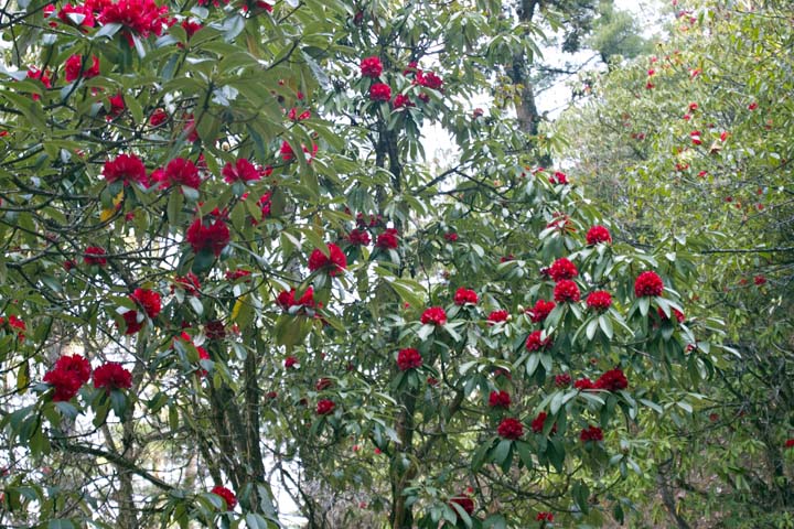 En route, the road passes through Brahman and Chhetri villages, to Kalikhastan at 1390m, which is the entrance to Langtang National Park. Villages now become sparser as the elevation increases, and the intense cultivation of the lowland rice-growing country gives way to herding, and small fields of maize, millet and vegetables. The road reaches its high point on the ridge at 1980m, and then makes a long contour, with a few ups and downs through oak and rhododendron forests, finally reaching Dhunche, the administrative headquarters of the region at 1950m, three to four hours’ drive from Betrawati.