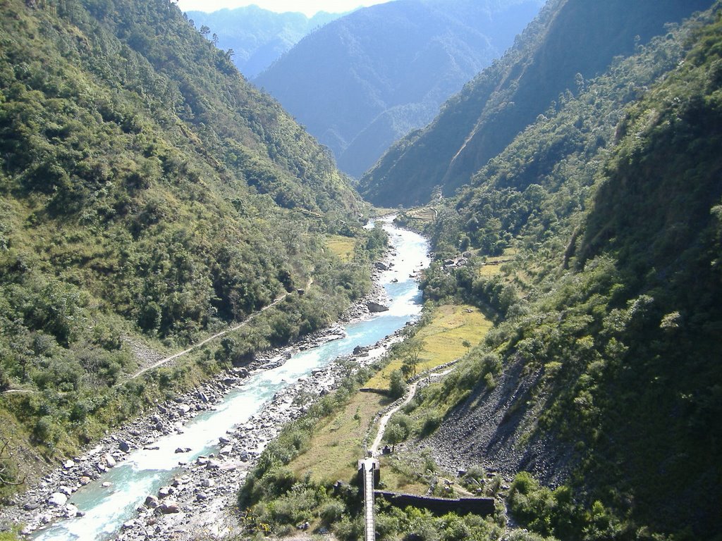 The Seti Khola is a tributary of the Saptagandaki river system of central Nepal. The set-in point for this two-day rafting trip is near the village of Damauli, easily accessible by a shortish road journey from Kathmandu, and an even shorter one from Pokhara. The trip offers relatively gentle rafting at first, as the river flows through a forested canyon which is a mere vestige of the vast area of forest which once covered Nepal’s middle hills.