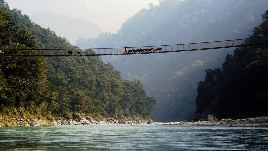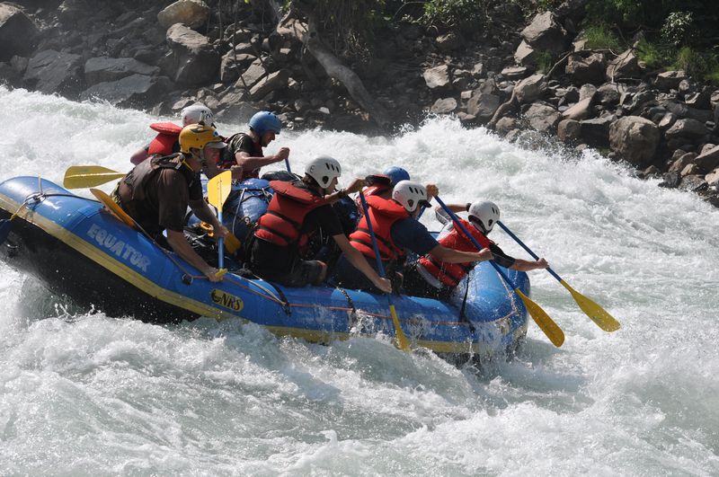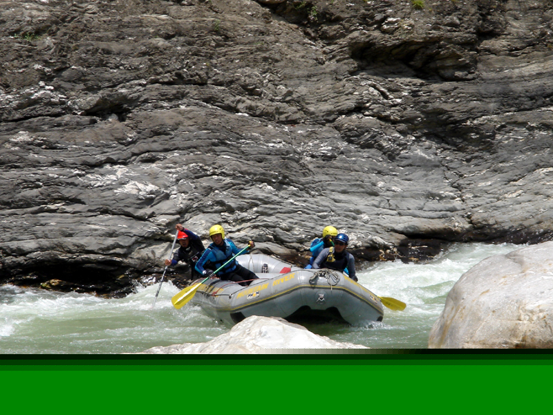 Soon after, encounters are made with more exciting rapids, which are a prelude to the technical rapid, Grade III+, which occurs before the Seti Khola merges with the Trisuli. Here the scenery changes radically, as earlier severe and twisted rock formations give way to gentler sandstone and gravel deposited by antecedent rivers. The trip will end at Gaighat, in readiness for onward travel, either to Kathmandu, or to Chitwan.
